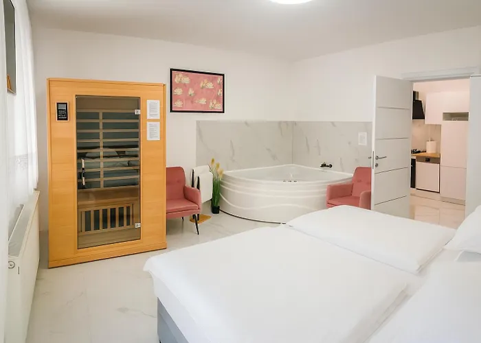 Gæster kan bo i Royal Wellness Apartman ferielejlighed når de er i Hévíz. Lejlighed består af 1 soveværelser, 1 badeværelser og også et fuldt udstyret køkken.